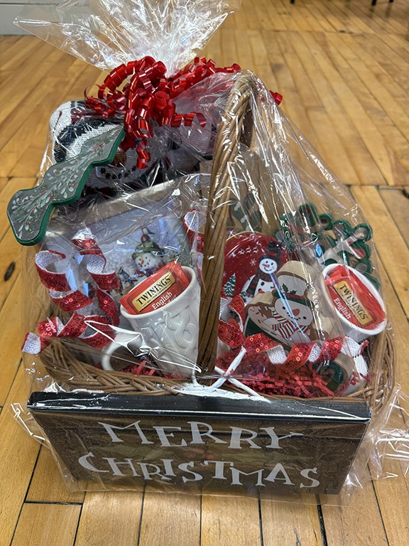 New Hope Mills various pancake, waffle and muffin mixes and maple syrup, hot chocolate, coffee, tea, granola and $25 gift card to Geddes Bakery.