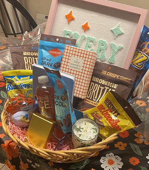 Take care of yourself – blanket, uplifting sign, gift card to Dre’s Place, chocolates, resilient black women book, chocolates, cookies, fuzzy socks, wine glass, bath salt, and more